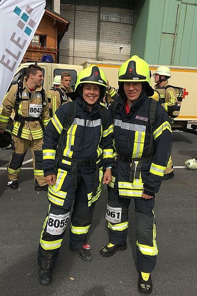 Während Sabine sich innerhalb der Frauenwertung der Herausforderung stellte, stellte sich Richard der Strecke in der Männerwertung. In der 24 kg schweren Schutzkleidung galt es für beide die vorgegebene Strecke zurückzulegen. Abstriche in der Schutzkleidung durften natürlich nicht gemacht werden, sodass die gleiche Kleidung wie auch im Einsatzfall im Innenangriff getragen wurde.