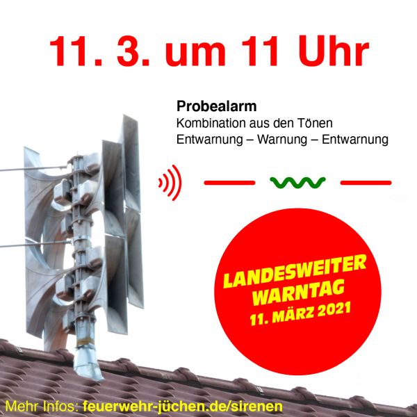Am 11.03. findet ab 11:00 Uhr erneut der sogenannte "landesweite Probealarm" statt. Im Unterschied zum bundesweiten Warntag im Herbst wird hier ausschließlich das Warnmittel der Sirenen erprobt. Hierzu werden auch im Stadtgebiet die vorhandenen Sirenen mit dem Warnton zur Bevölkerungswarnung ausgelöst. Im Vorfeld erfolgt der sogenannte Ton zur Entwarnung, der auf den Probealarm hindeuten soll. In unseren Medien werden wir natürlich im Zeitraum der Warnung ebenfalls berichten.