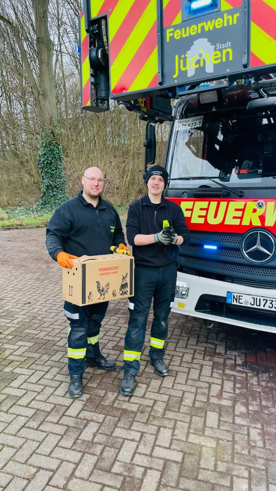 Zu einem Tierrettungseinsatz wurde am Freitag Nachmittag der Tagesdienst in die Ortslage Hochneukirch alarmiert, wo das "Zwischtern" aus einem Kamin die Bewohner auf die Zwangslage einer Dohle aufmerksam machte.