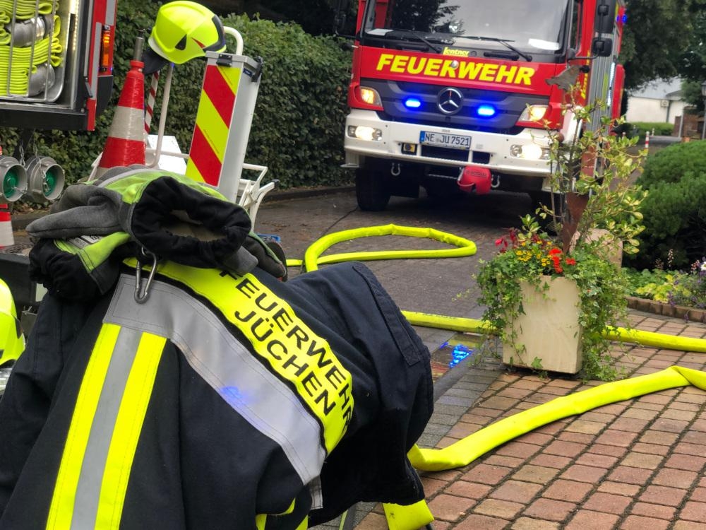 Weitere Einsatzstellen durch den Starkregen ließen nicht lange auf sich warten, während die Meldung eines Wasserschadens im Keller eines Wohnhauses auf der Buschgasse in Jüchen durch die freiwerdenden Kräfte der ersten Einsatzstelle übernommen wurden, wurden die Einheiten Kelzenberg und Waat zur Unterstützung auf die Wache alarmiert. Während der Bereitschaft wurden durch die Kräfte Einsatzstellen in Bedburdyck und Gierath abgearbeitet.